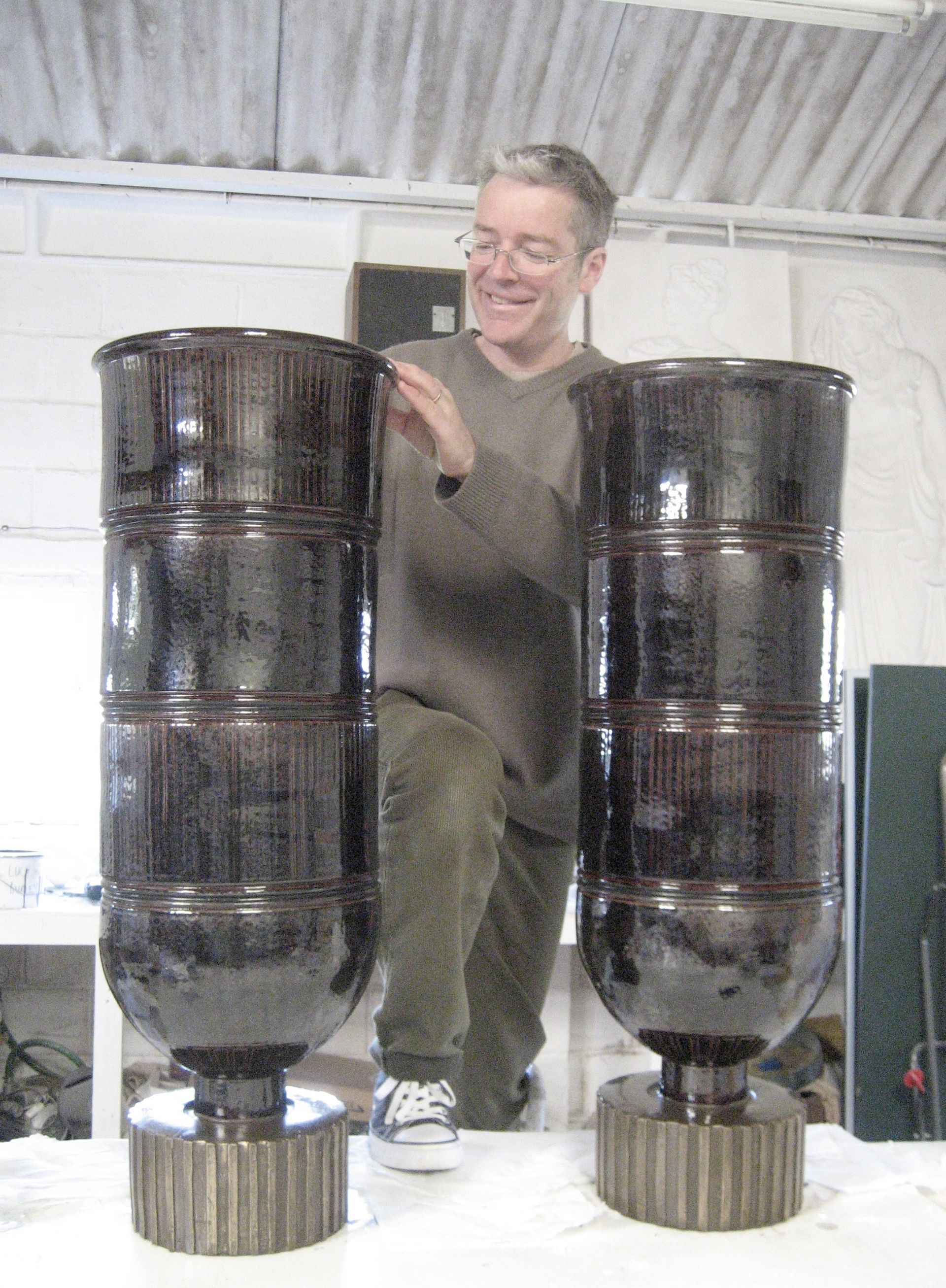 Monumental Ceramic Urns with cast bronze base Tom Ford for David Collins USA